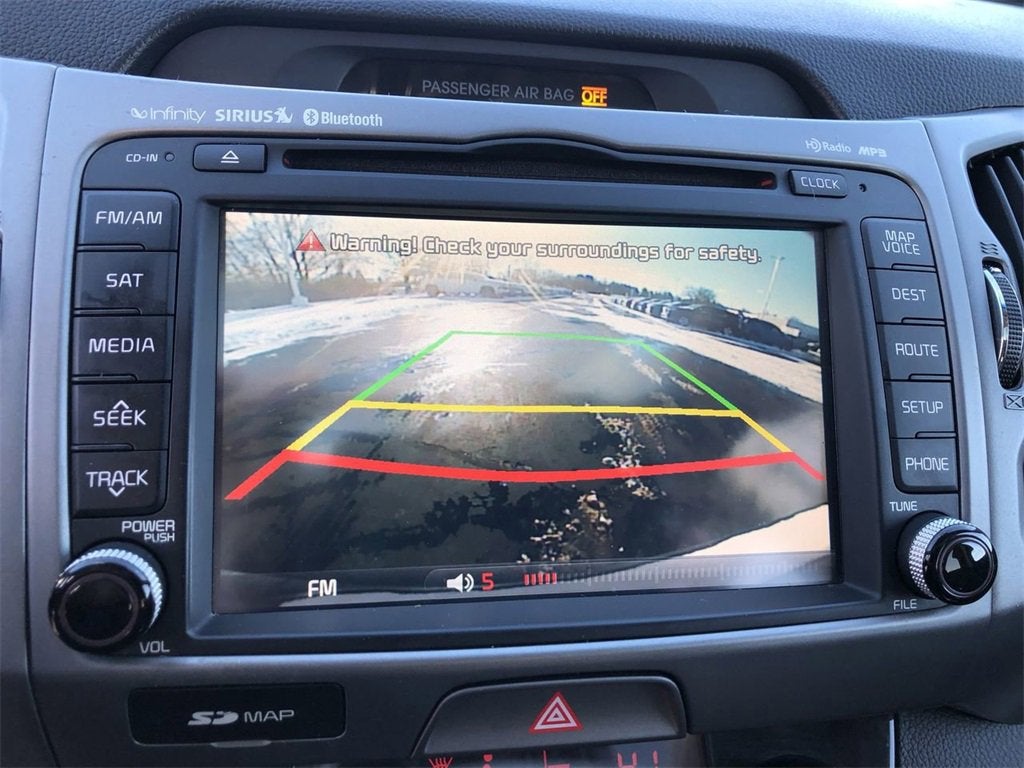 21/28 City/Highway MPG 18 Alloy Wheels, 4-Wheel Disc Brakes, 6 Speakers, ABS brakes, Air Conditioning, Alloy wheels, AM/FM radio: SiriusXM, Automatic temperature control, Brake assist, Bumpers: body-color, Carpet Floor Mats, CD player, Cooled Glovebox, Delay-off headlights, Driver door bin, Driver vanity mirror, Dual Body-Color Power Heated Mirrors, Dual front impact airbags, Dual front side impact airbags, Electrochromic Mirror w/Homelink, Electronic Stability Control, EX Premium Package, Exterior Parking Camera Rear, Four wheel independent suspension, Front anti-roll bar, Front Bucket Seats, Front Center Armrest, Front dual zone A/C, Front Fog Lamps, Front reading lights, Fully automatic headlights, Heated Front Bucket Seats, Heated front seats, Illuminated entry, Infinity Premium Audio, Leather Seat Trim, Leather Shift Knob, Low tire pressure warning, Occupant sensing airbag, Outside temperature display, Overhead airbag, Overhead console, Panic alarm, Panoramic Sunroof, Passenger door bin, Passenger vanity mirror, Power door mirrors, Power driver seat, Power steering, Power windows, Premium audio system: UVO, Push Button Start, Radio: AM/FM/CD/MP3/SiriusXM w/Touch Screen, Rear anti-roll bar, Rear Park Assist System, Rear seat center armrest, Rear window defroster, Rear window wiper, Remote keyless entry, Roof rack: rails only, Security system, Smart Key w/Push Button Start, Speed control, Speed-sensing steering, Split folding rear seat, Spoiler, Steering wheel mounted audio controls, Tachometer, Telescoping steering wheel, Tilt steering wheel, Traction control, Trip computer, UVO eServices w/Navigation, Variably intermittent wipers, Ventilated Front Seats.